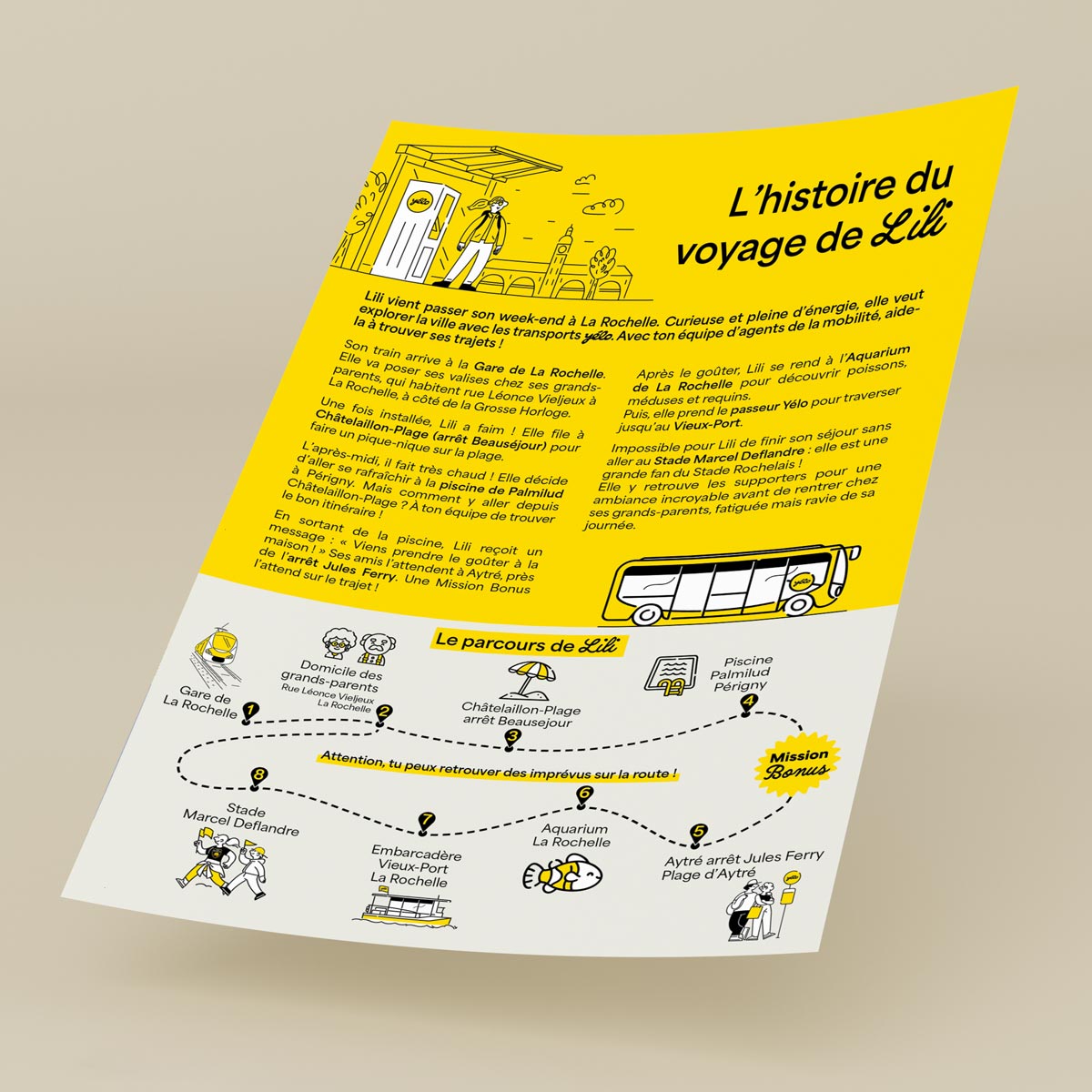 Face à la diversité de ses offres et à la pluralité de ses publics — usagers quotidiens, familles, scolaires, touristes, personnes à mobilité réduite —, Yélo s’appuie sur une communication claire, accessible et engageante. C’est dans ce cadre qu’IZEECOM accompagne le réseau dans la conception et la production de ses supports de communication, du plus opérationnel au plus pédagogique.